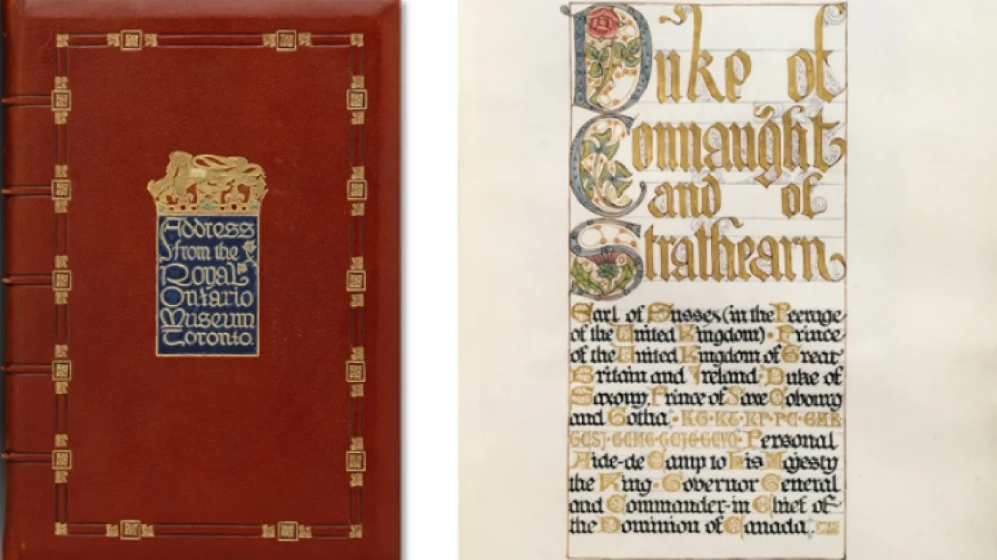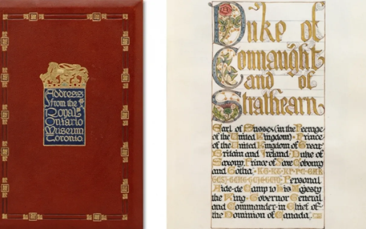 Le 19 mars 1914, le duc de Connaught a officiellement inauguré le Musée royal de l'Ontario. Pour commémorer cette occasion, on lui a remis un manuscrit somptueusement illustré et décoré contenant les représentations des objets exposés le jour de l’ouverture du ROM. Ce manuscrit donne un avant-goût des collections réunies par le Musée depuis un siècle.