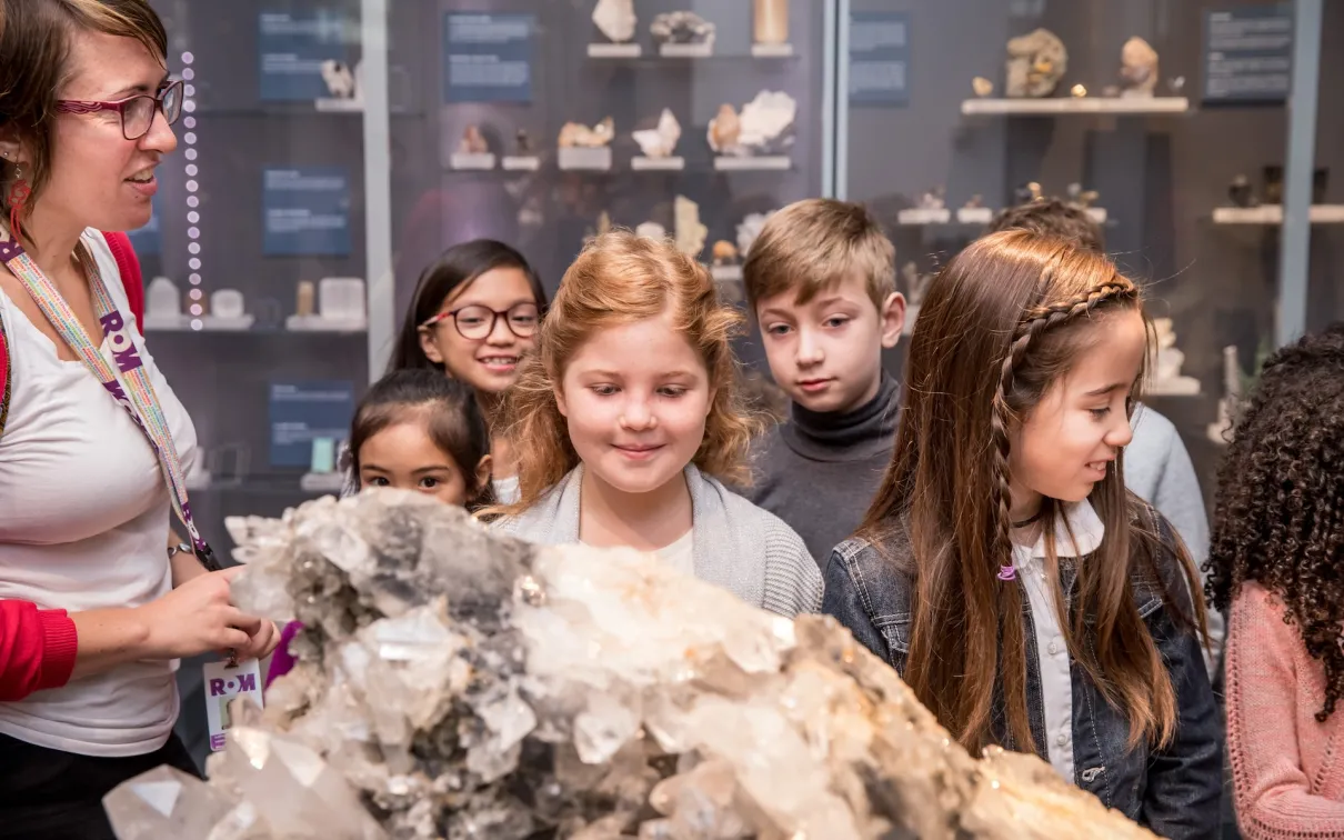 En tant que l'une des plus grandes institutions éducatives pluridisciplinaires du Canada, le ROM joue un rôle essentiel en tant que salle de classe étendue et pratique pour plus de 150 000 enfants à travers la province. Grâce à une gamme variée de programmes d'apprentissage basés sur les collections – offerts sur place et au sein des communautés – nous nourrissons la curiosité, encourageons la pensée critique et allumons le potentiel des jeunes apprenants d'une manière qui n'est pas possible dans les environnements d'apprentissage traditionnels.