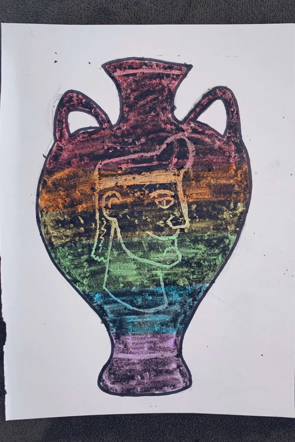 2. À l'aide d'un crayon de couleur ou d'un crayon à papier, colorie l'intérieur de ton amphore dans le style de ton choix !