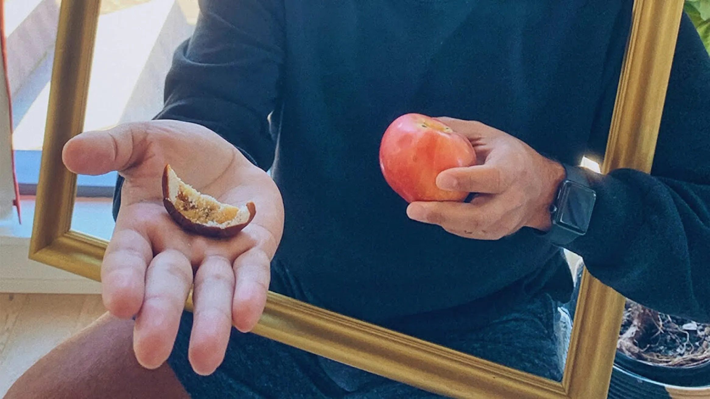 2. Prenez une photo de votre morceau de pomme fraîchement coupé pour le comparer plus tard à votre pomme momifiée. Prenez des notes : combien pèse-t-elle, quelle est sa taille, est-elle brillante, juteuse, de quelle couleur est-elle ?
