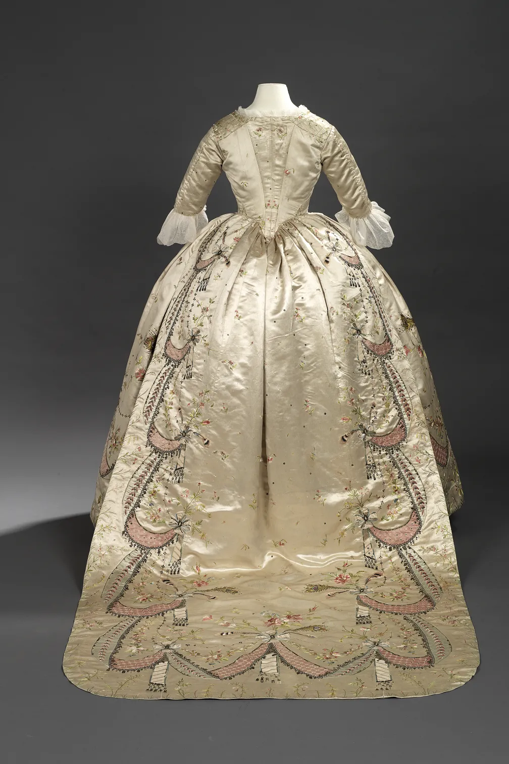Crédit photo : Attribuée à Marie-Jean « Rose » Bertin (France, 1747-1813) ; cette robe aurait été portée par Marie-Antoinette.