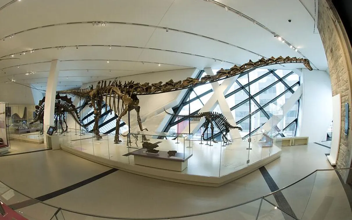 This rare, longnecked sauropod skeleton is the largest mounted dinosaur in Canada stretching 90 feet long across the James and Louise Temerty Galleries of the Age of Dinosaurs. The barosaurus is just one of the Royal Ontario Museum's iconic objects.