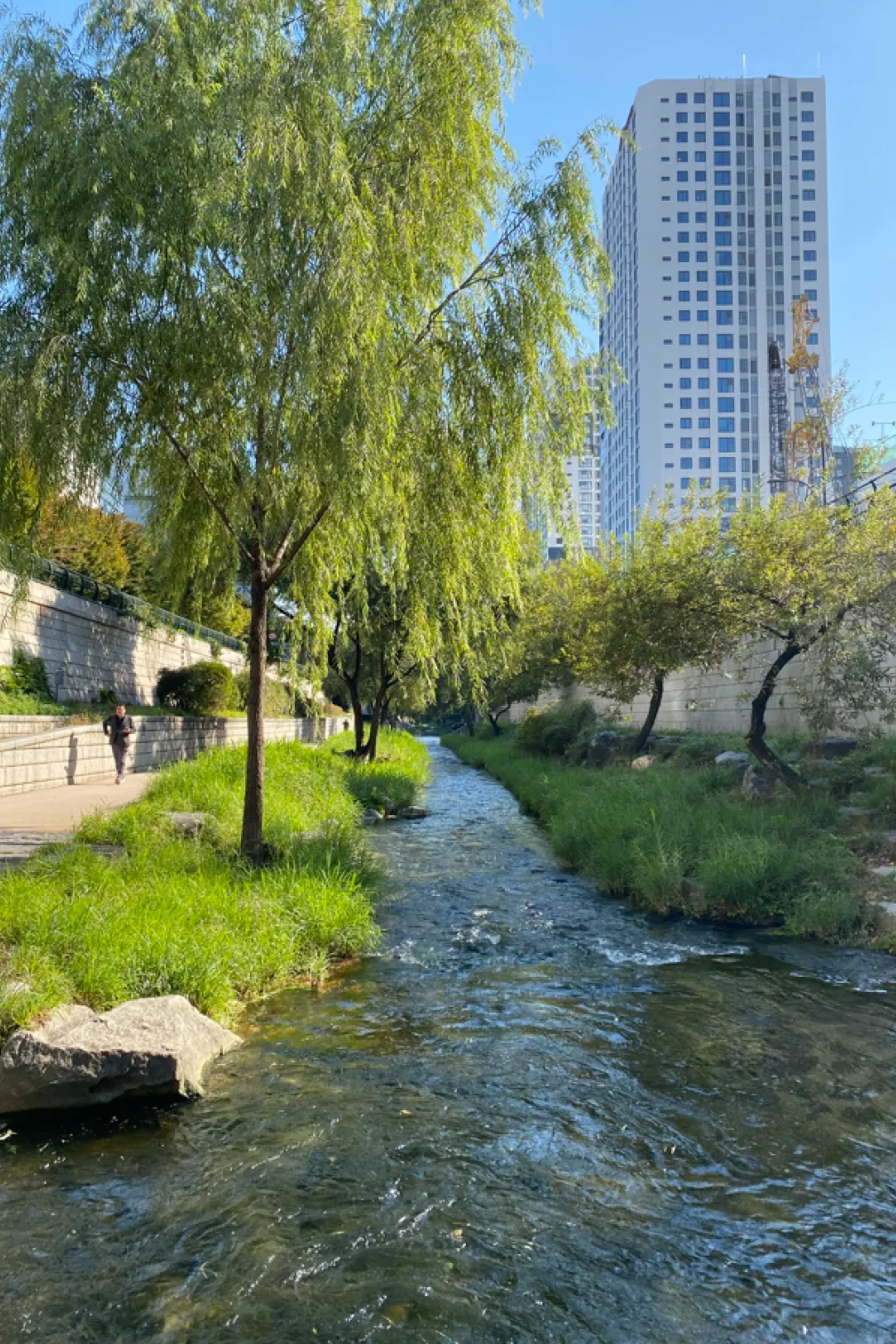 To me, it doesn’t really matter that Cheonggyecheon is not natural—there may have been adaptive benefits to some local species in having the stream be intermittent and sourced with its original waters, but other species will benefit from its continuous flow and the high water quality that is currently maintained.